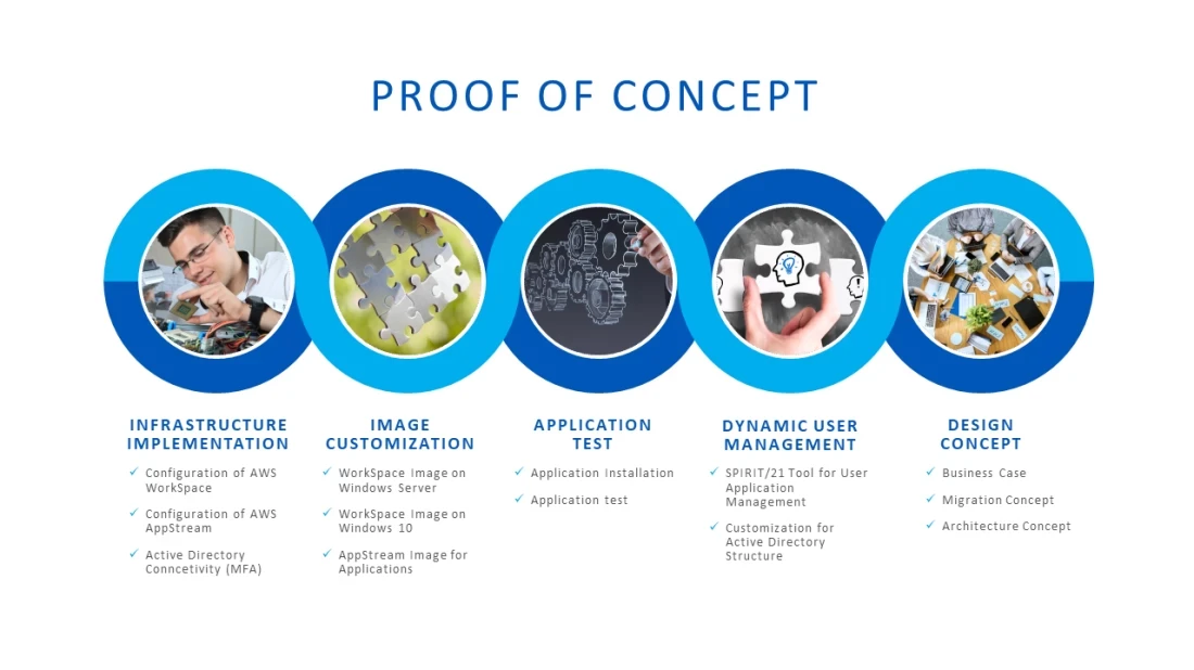 Bei einer cloudbasierten Lösung mit AWS WorkSpaces entfallen diese Tätigkeiten. Zudem lassen sich die Leistungen dieses Desktop-Computing Services über die Anzahl der Benutzer einfach und schnell skalieren - sowohl nach oben als auch nach unten. Eine weitere wichtige Eigenschaft ist das nutzungsbasierte Abrechnungsmodell. Jede Stunde, in denen die Benutzer nicht angemeldet sind, wird auch nicht in Rechnung gestellt. Selbstverständlich kann das Image Customization von der unternehmenseigenen IT selbst oder von einem Partner wie SPIRIT/21 durchgeführt und angepasst werden.